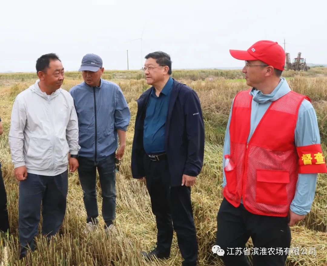 6月2日,蘇墾農(nóng)發(fā)濱淮分公司第六生產(chǎn)區(qū)小麥開鐮收割。蘇墾農(nóng)發(fā)濱淮分公司總經(jīng)理李衛(wèi)東、農(nóng)場(chǎng)公司紀(jì)委書記徐坤山到現(xiàn)場(chǎng)查看收割情況。