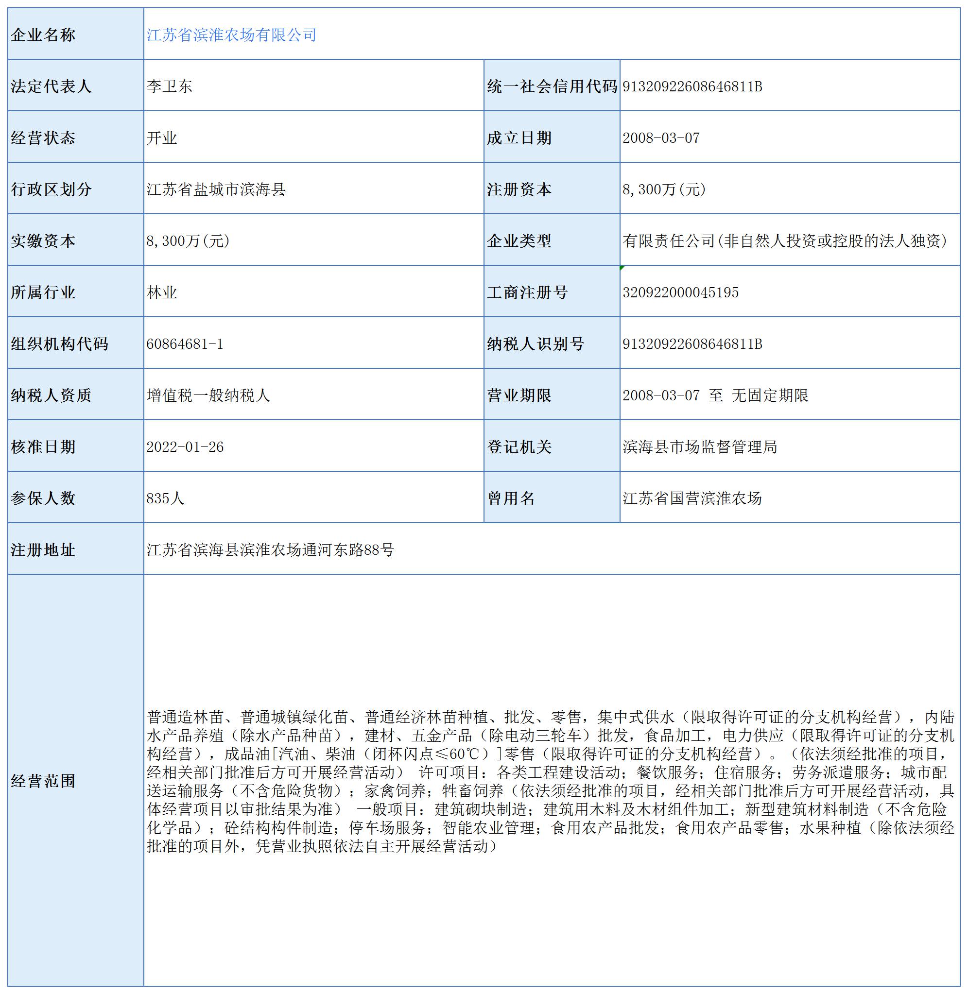 江蘇省濱淮農(nóng)場有限公司工商注冊信息