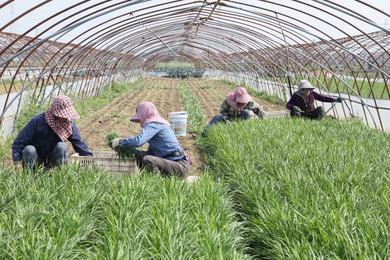 與此同時(shí),韭菜種植區(qū)也是一片繁忙。嫩綠的韭菜散發(fā)著濃郁的香氣,工人們熟練地?fù)]舞著鐮刀,一茬茬新鮮的韭菜被整齊地收割下來。同樣,韭菜的供應(yīng)也嚴(yán)格按照需求進(jìn)行采摘,確保新鮮度和供應(yīng)量的平衡!熬虏艘呀(jīng)是第5茬了,這一茬韭菜葉片寬大、口感好,畝產(chǎn)量在2000斤以上!王偉偉表示。